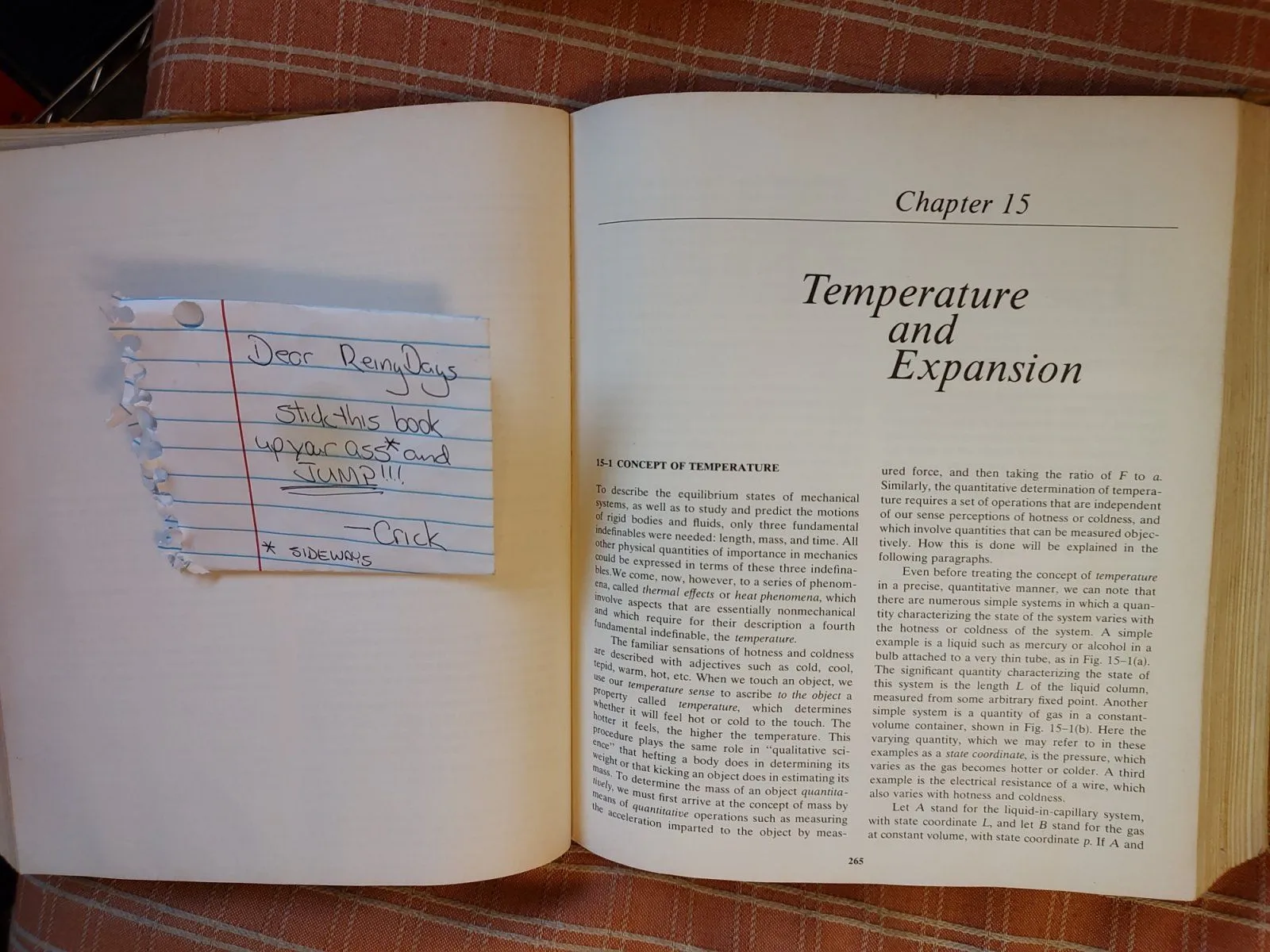 I still have my old Physics textbook. "University Physics", 5th edition, by Sears, Zemansky and Young. The book is divided into two parts. The first is "Mechanics, Heat and Sound". The second is "Electricity and Magnetism, Light and Atomic Physics". Each part is divided into chapters. Beginning at Chapter 15 of Part I we find 15) Temperature and Expansion, 16) Heat and Heat Measurements, 17) Transfer of Heat, 18) Thermal Properties of Matter and 19) The Laws of Thermodynamics. Chapter 15, Section 1 states (and I'm copying all this out by hand so you'd better damned well read it):