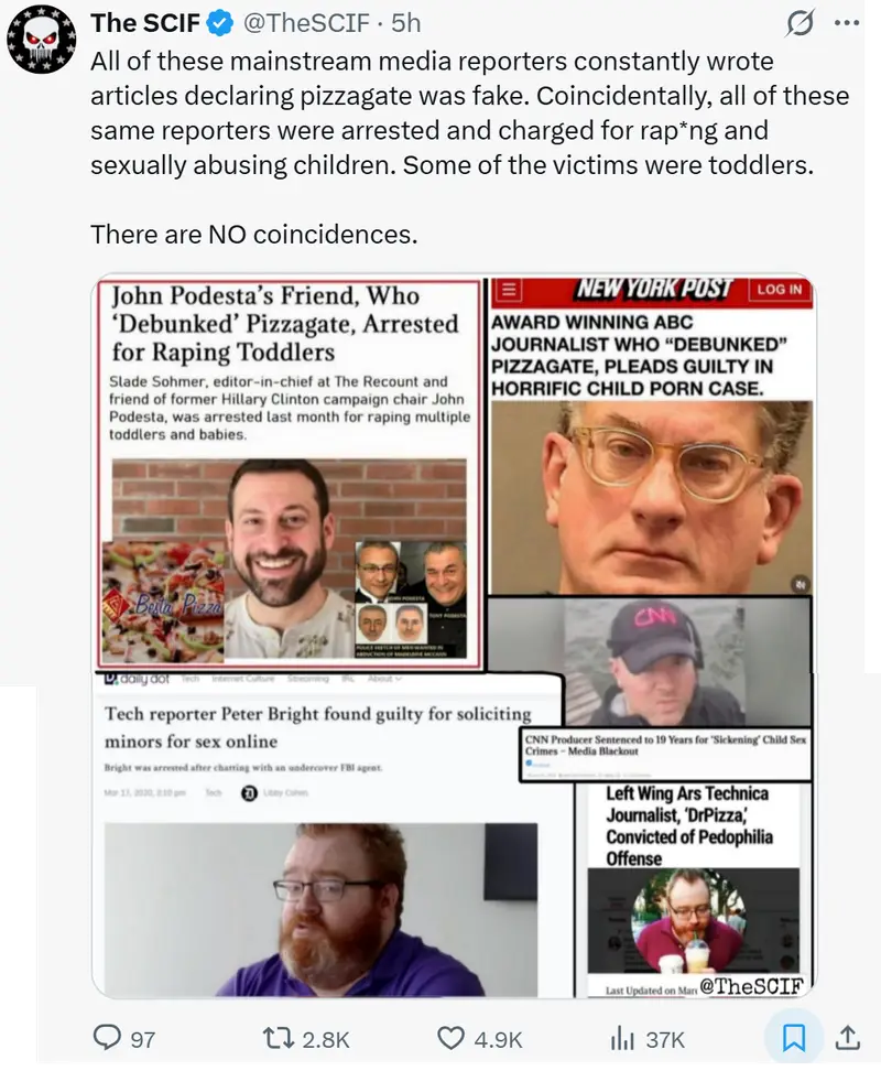 Pizza is mentioned as many times as Trump and there are unmistakable references that Pizza means young girls