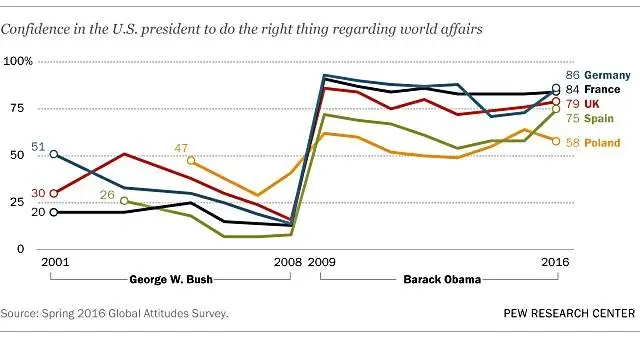 Nonetheless, confidence in the U.S. increased worldwide when Obama was president: