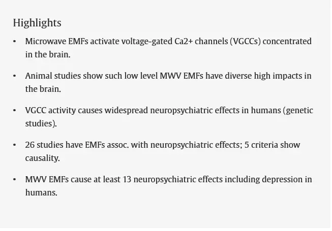Microwave frequency electromagnetic fields (EMFs) produce widespread neuropsychiatric effects including depression
