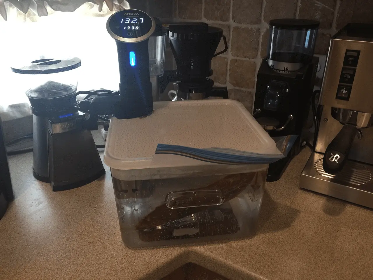 Thinking ahead to that sous vide brisket I got the Anova for the ability to go up to five gallons and more if I use an ice chest. I've read some pretty interesting recipes that call for three days in the water followed by six hours on the smoker.