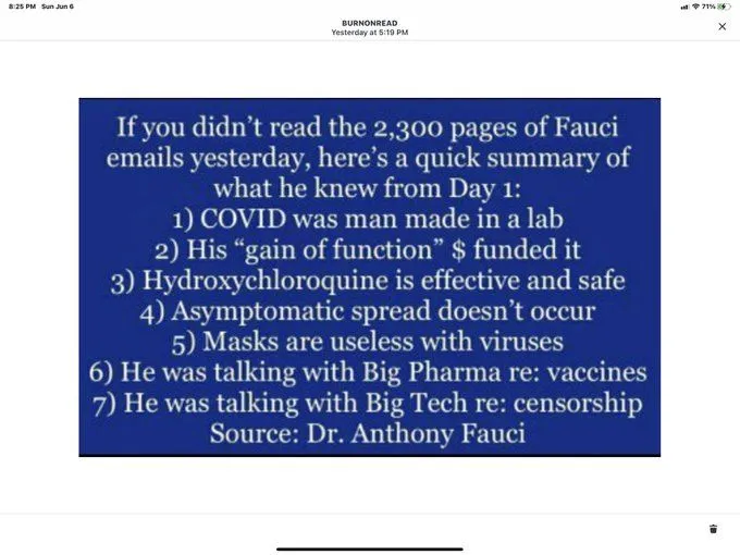 The only people that read Fauci’s emails and came to the conclusions you guys did, are people who believe it already and were willing to twist anything to fit their narrative.