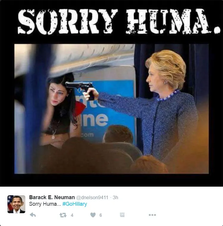 Though Huma is no wilting flower, she's clearly a punching bag for both Weiner and her witch boss, Hillary Clinton. Both are losers and now out of office and power so it looks like Huma's ride on corrupt coattails finally caught up with her.