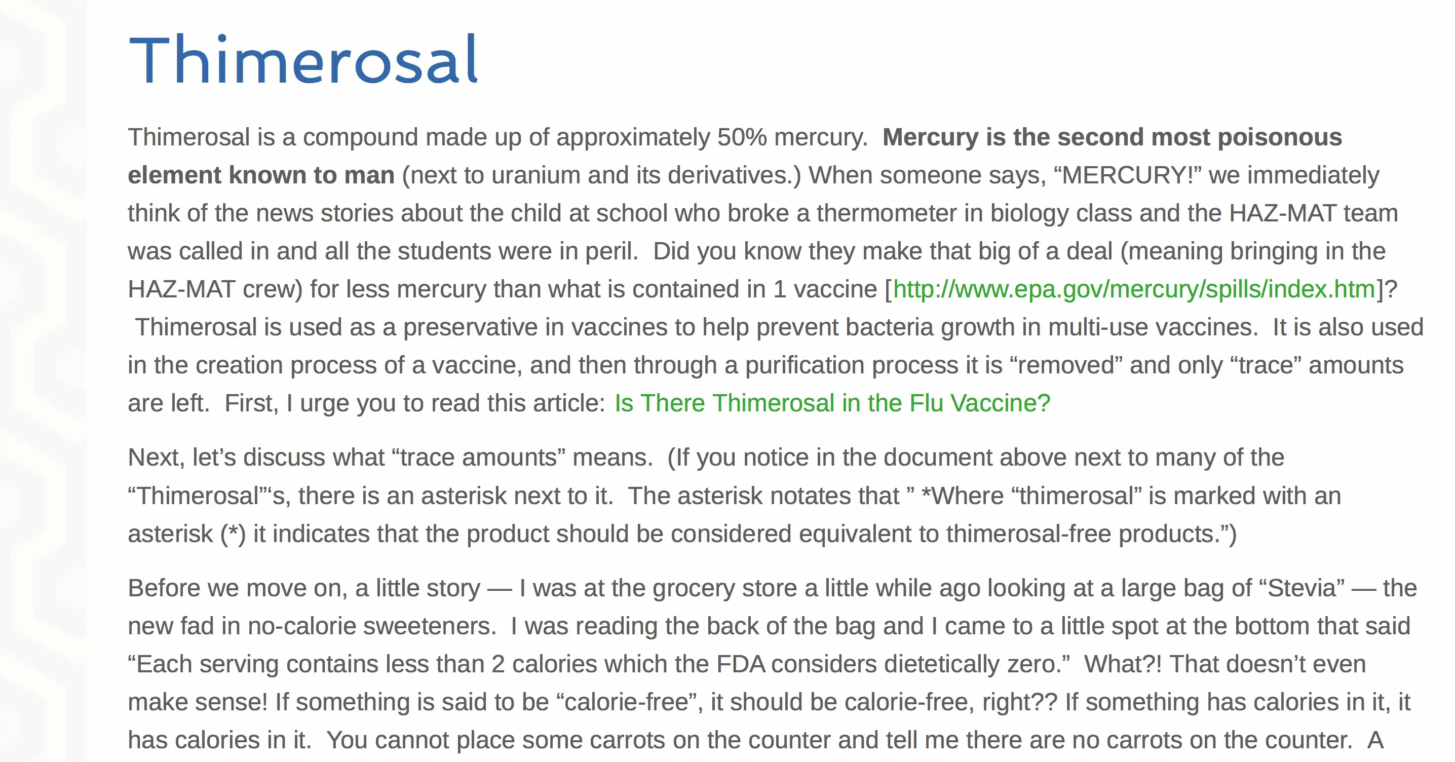Thirmorsal is MERCURY....... you gonna drink some mercury, or your kids or grand kids.
