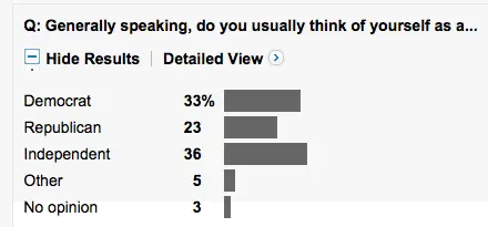 Common sense would say if almost 10% more responses came from Demo/leaning Independents THE RESULTS ARE SKEWED!!!!!