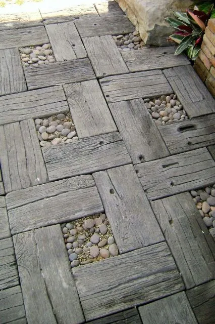 Maybe a partially burried bark log rounded top waste board spaced out would make a rustic drive and perhaps lumber mills might donate the waste cut or sell them cheap. Someone logging and milling lumber on their own property could utilize the exterior cuts that way and do a nice short rustic drive.