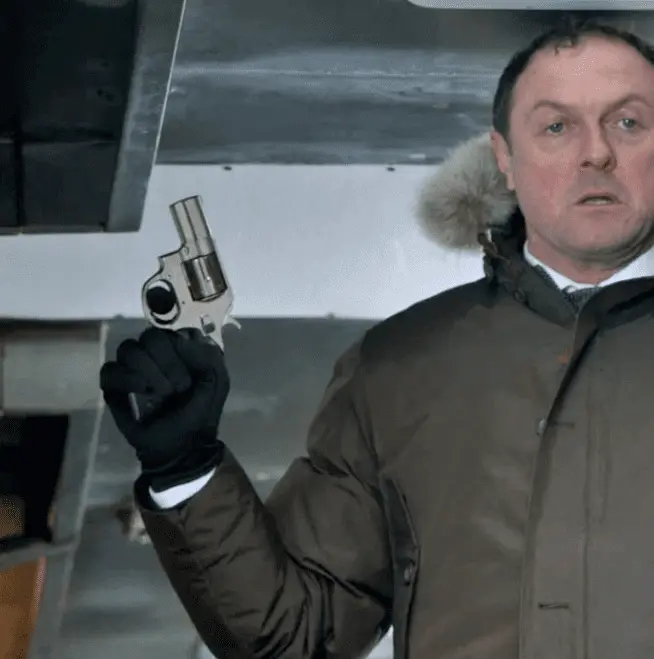 " Trevor Holt (Boris McGiver) is seen wielding a stainless revolver in "No Regrets" (S3E18). Upon closer inspection, this appears to be a Non Gun."