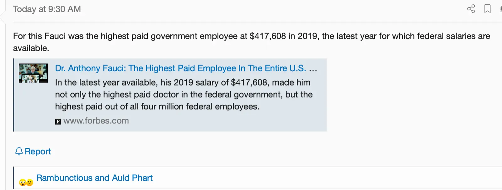 Here is the thread!Your thread title talked about some surgery for animals and the first post talked about Fauci’s salary. They’re totally unrelated and the title had no support in the body. It was a total bait and switch.