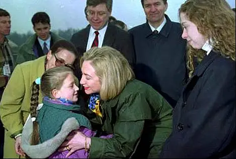 Whiz’s “us”?These female Democrats sure have lives fraught with danger! Here is a pic of Hillary bravely confronting a Bosnian sniper during an ill-fated landing under a hail of gunfire.