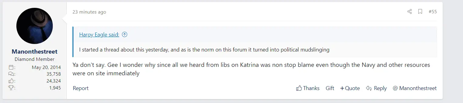 All I know is they got between 19 and 26 inches.Yea, lets not politicize this shit. That sounds terrible. How much rain did they get?