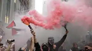 'Palestine' written on wall of one of New York's largest synagogues as city continues to reel from spate of serious antisemitic incidents last week.
