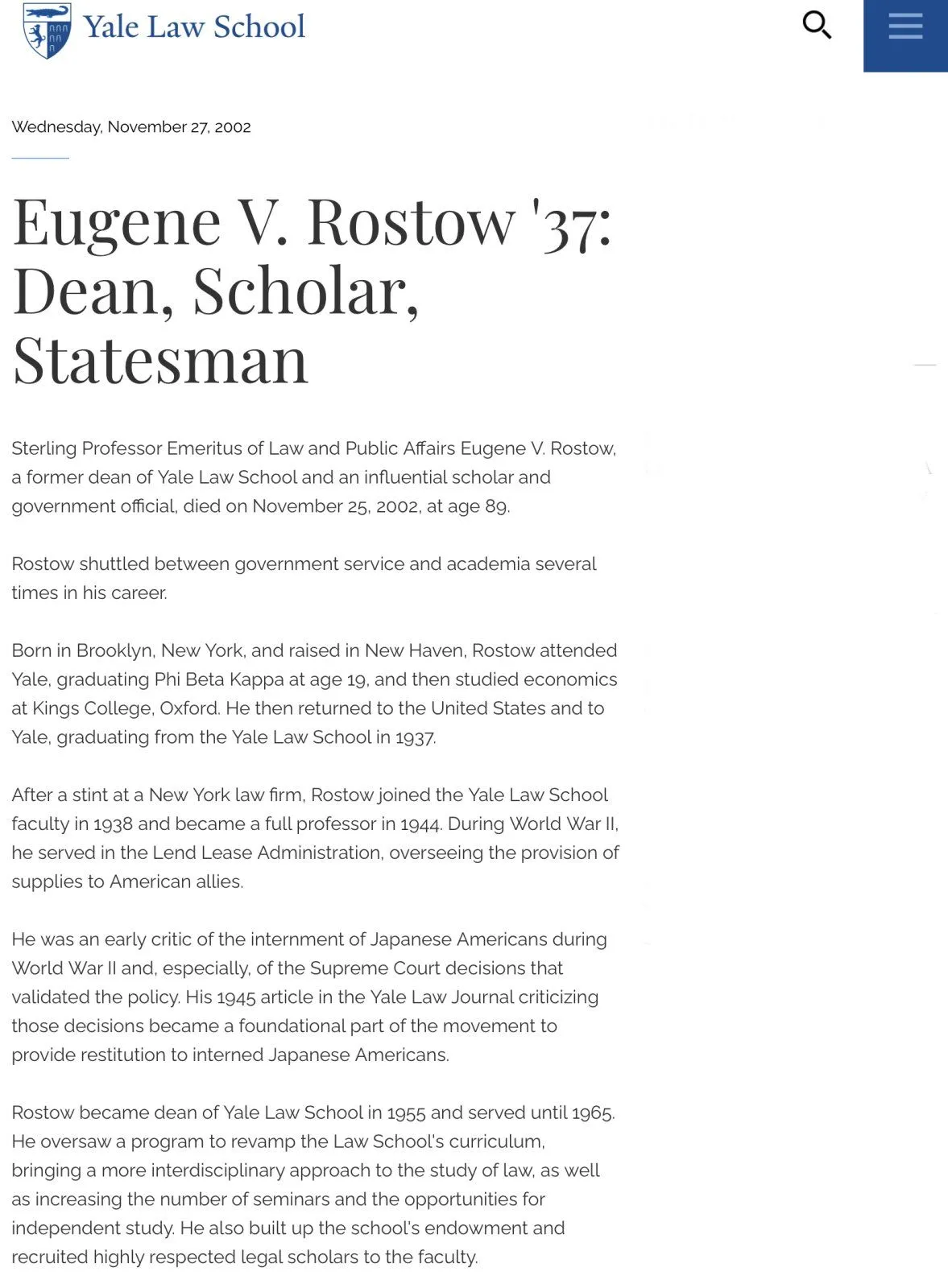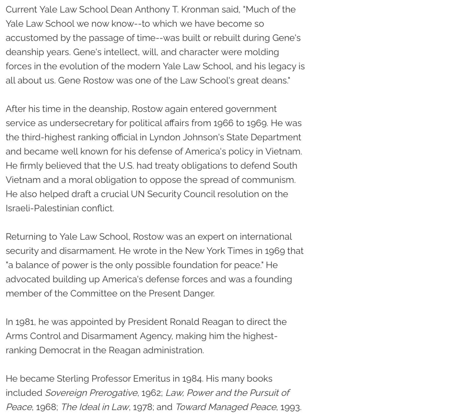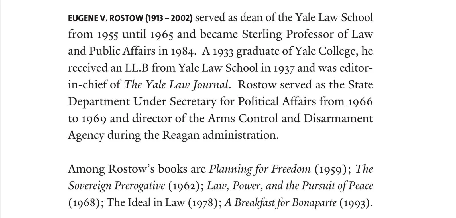 Renowned legal scholar Eugene Rostow, former Dean of the Yale Law School…