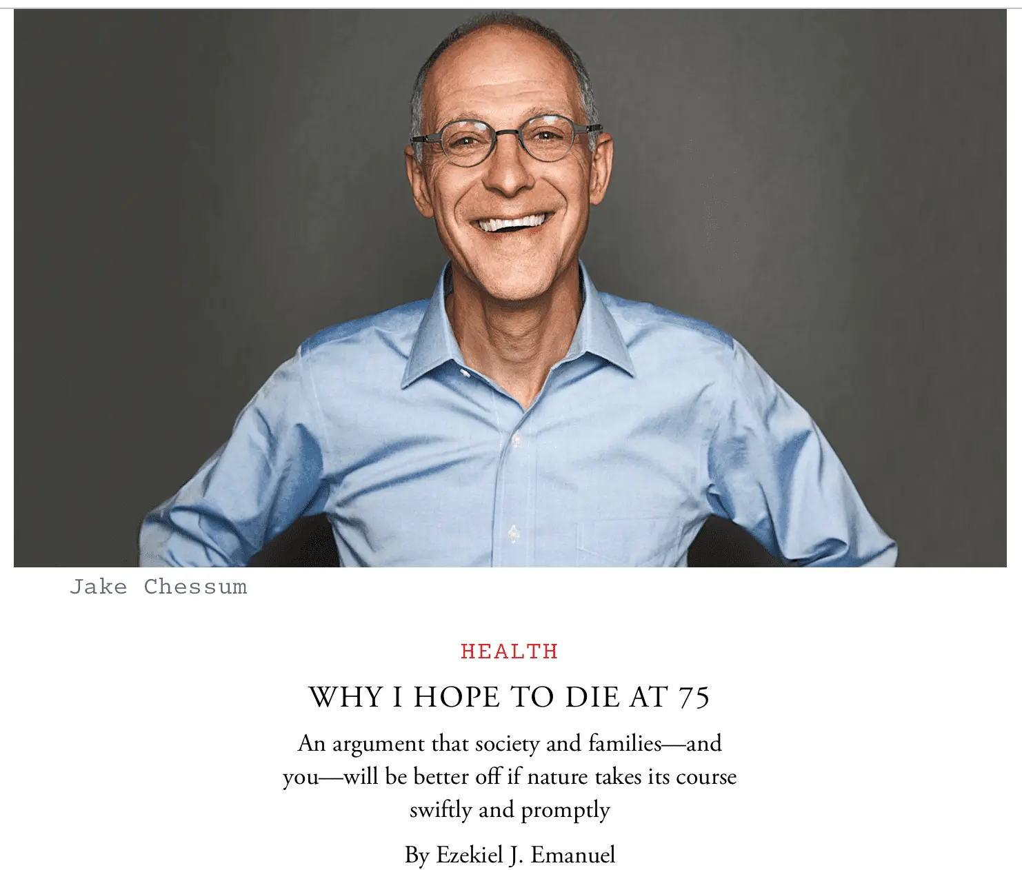 Dr. Emanuel architect of the Affordable Care Act, has repeatedly said he wants to live to age 75.