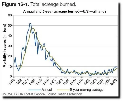 Wow you cry over a single year while you ignore the entire history of fires, here is a chart and link to the Department of Agriculture: