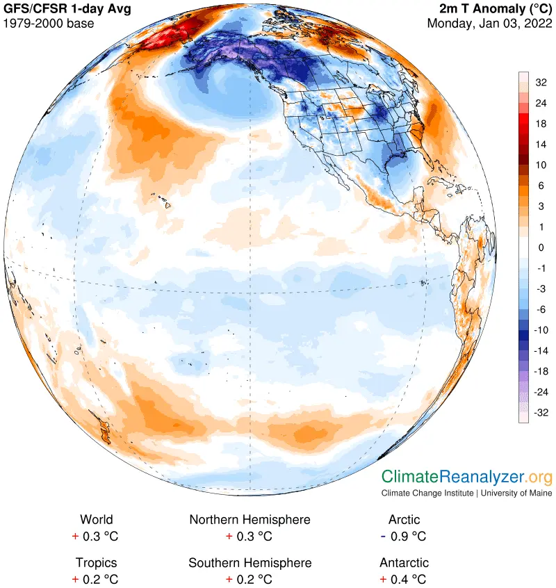 LOL A few days ago, Kodiak Island was at 67 degrees, now it is at 7 degrees. And the Kamchatka Peninsula is now very warm for this time of year. Texas over Christmas was having high 70 degree days, and now it has snow. Real whiplash weather all over.I wanted to check on the devastating effect manmade global climate warming change has had since I started posting this dataset.