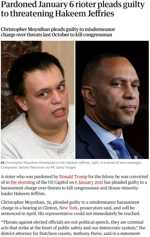 Christopher Moynihan pleads guilty to misdemeanor charge over threats last October to kill congressmanwww.theguardian.com