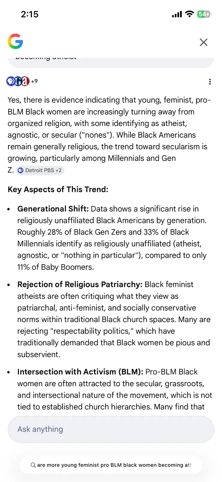 OK, you have the guardian source and then the Google AI. But I’m also asking what people here think about this thread question. There are certainly young pro BLM feminist, black women who are openly atheist, some of them growing up Christian, but becoming atheist.