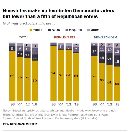 That number is actually a lot lower than that when you consider a large portion of that Hispanic vote that sides with Republicans are white Hispanics. Think Cubans in Florida.20% of Republicans are minorities. That is significant considering that 40% of democrats are minorities.