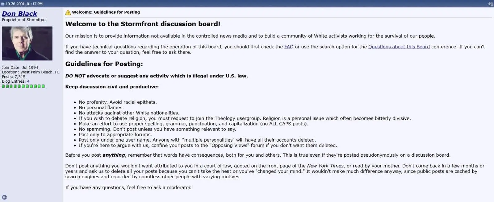 I will preface this by saying I have never actually visited Stormfront and know of its existence only from the leftists here.