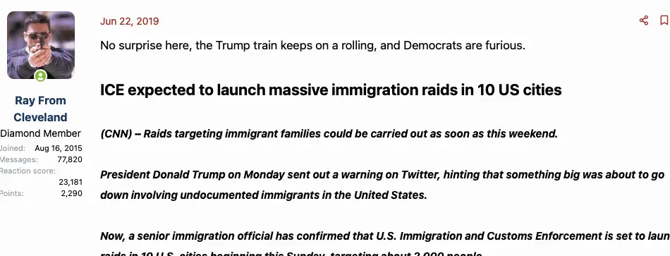 No surprise here, the Trump train keeps on a rolling, and Democrats are furious. ICE expected to launch massive immigration raids in 10 US cities (CNN) – Raids targeting immigrant families could be carried out as soon as this weekend. President Donald Trump on Monday sent out a warning on...www.usmessageboard.com