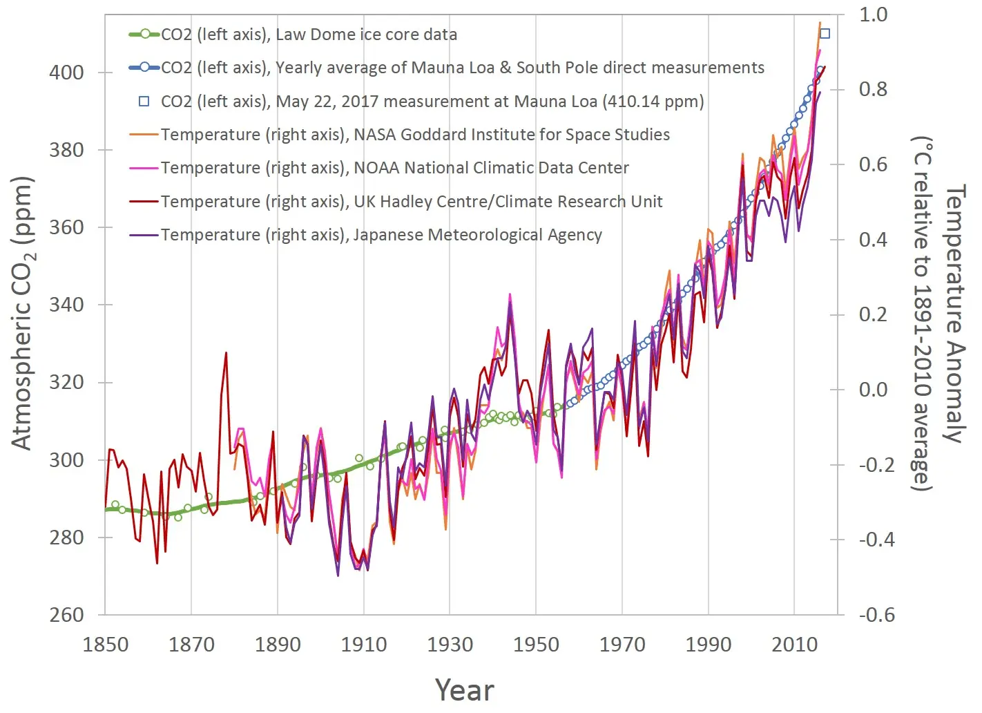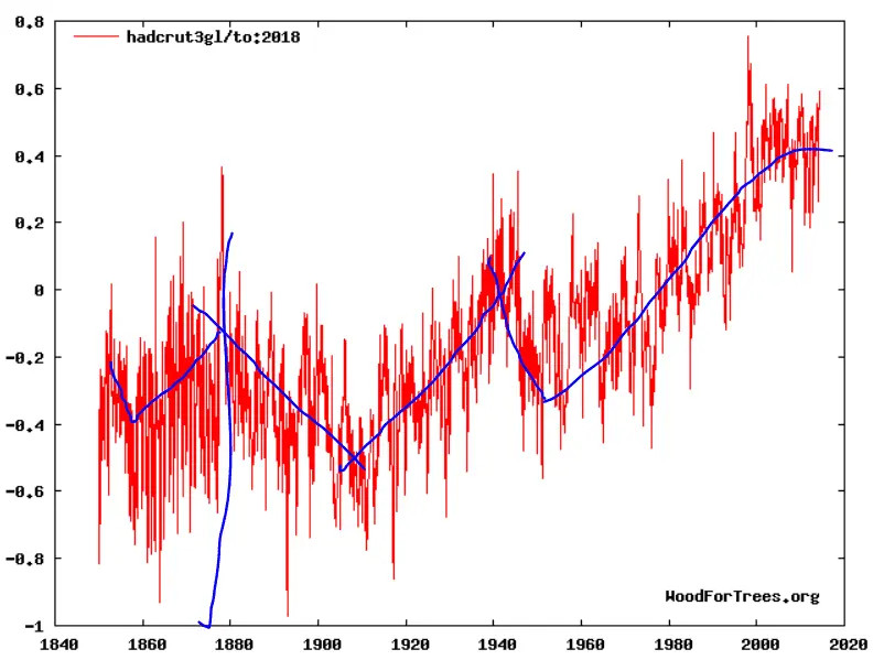 So, we've been cooling since 1871? That doesn't seem quite right. If we're cooling, why does the data look like this: