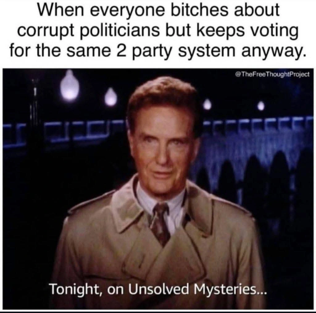 When people vote for Kermit The Frog and think they’re stopping the duopoly from winning by doing so. hahahaha