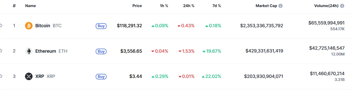 Examples: Cryptocurrency Prices, Charts And Market Capitalizations | CoinMarketCap
