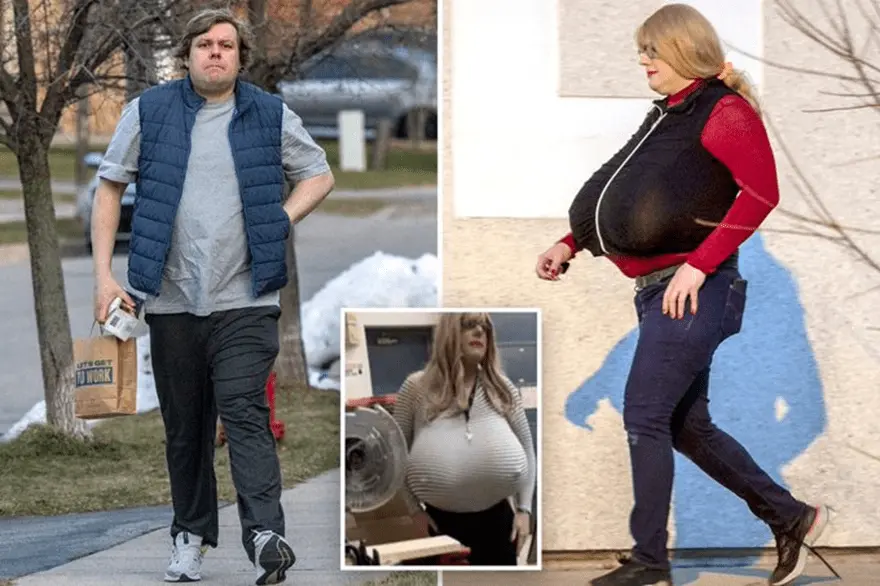 Trans teacher with Z-size prosthetic breasts dresses as man outside of school, neighbor says.