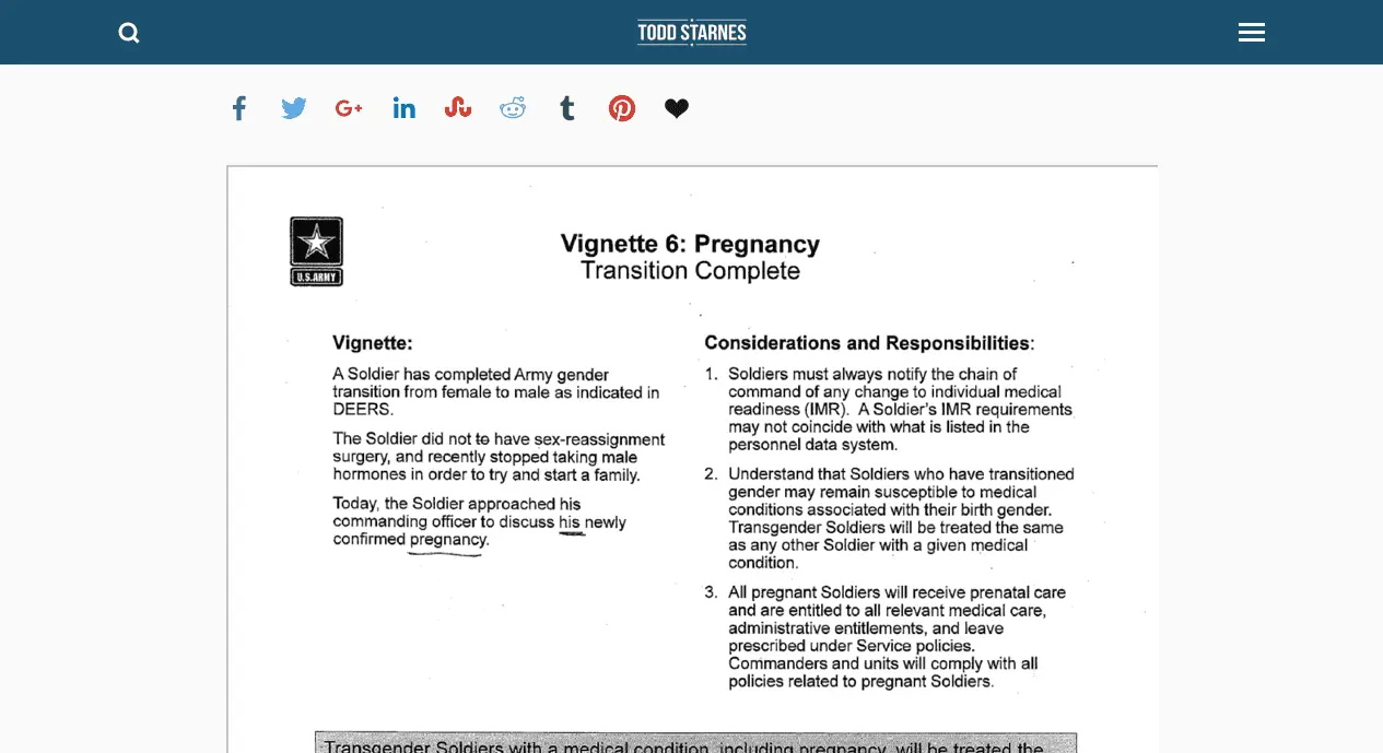 DAYS OF LOT: Army's transgender policy now includes guidelines on male pregnancies