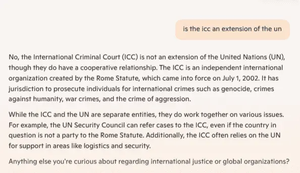 When you're testicles descend try searching the web for "is the icc an extension of the un" do that and share the results with all of us here.