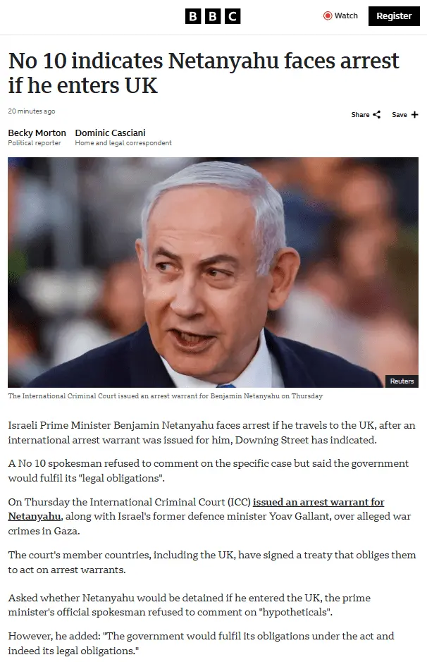 Is that wibble supposed to mean something?Hungary dismisses the ICC warrants and invites Netanyahu to visit, and France refuses to say if it will enforce the warrants. Trump will soon take office and the Hague Invasion Act is still in force.