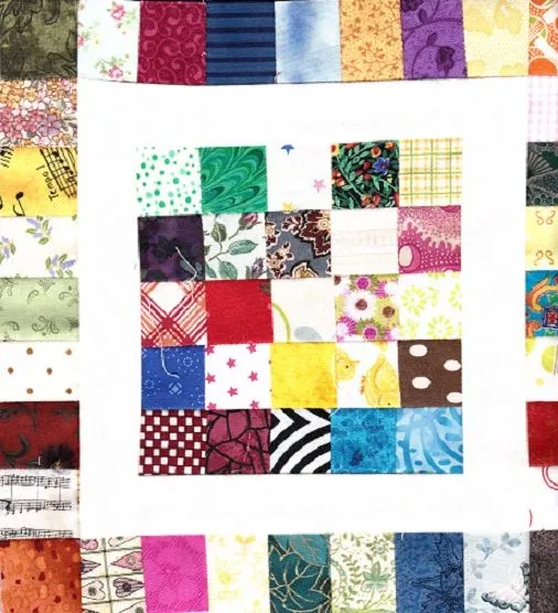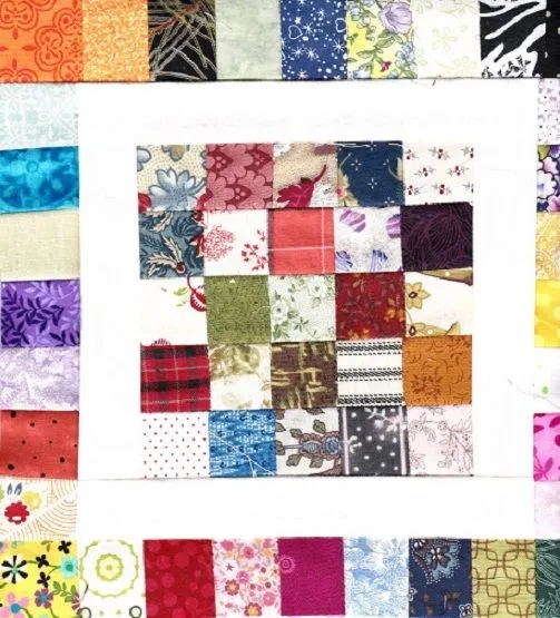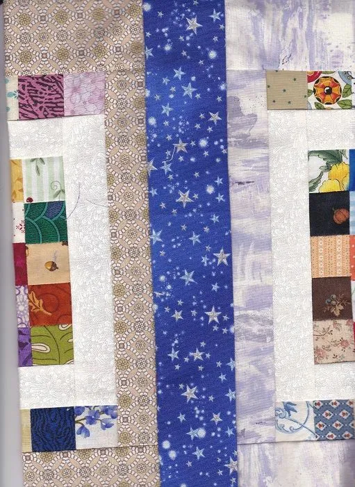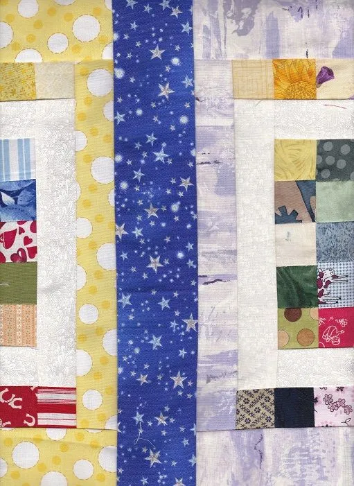 And in my mind, I saw: A Magic Carpet Quilt for a kid who really could use a Magic carpet out of an abusive family situation now and then. So I started with the rotary cutter making 1.5"x9.5" sides and 2.5"x9.5" tops and bottoms.