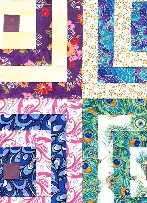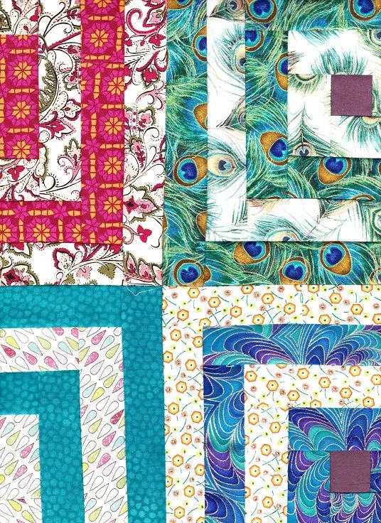 Sorry the colors from my computer just don't reach out and grab you like the ones I put on the scanner, but the blocks just sizzle together and are a totally fun group. I'm alternating the placement of rows to make the values more outstanding if someone put them all to gray on their HP scanners. If you ensure the values are contrasting, that gives this type of a log cabin square, originally called "white house steps" some zing.