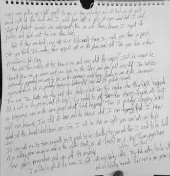 So everyone was on the same page about what happened. Tim is probably crapping bricks right now because I’m still at large and he knows what I can disclose and that I know about all the buried skeletons are.