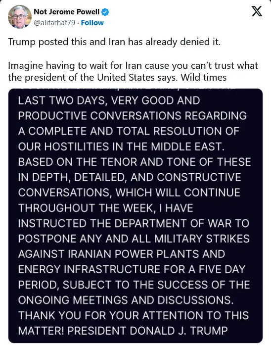The only reason futures are up is Trump is claiming to be talking to the Iranians. But it's going to be clear he has nothing to offer them.