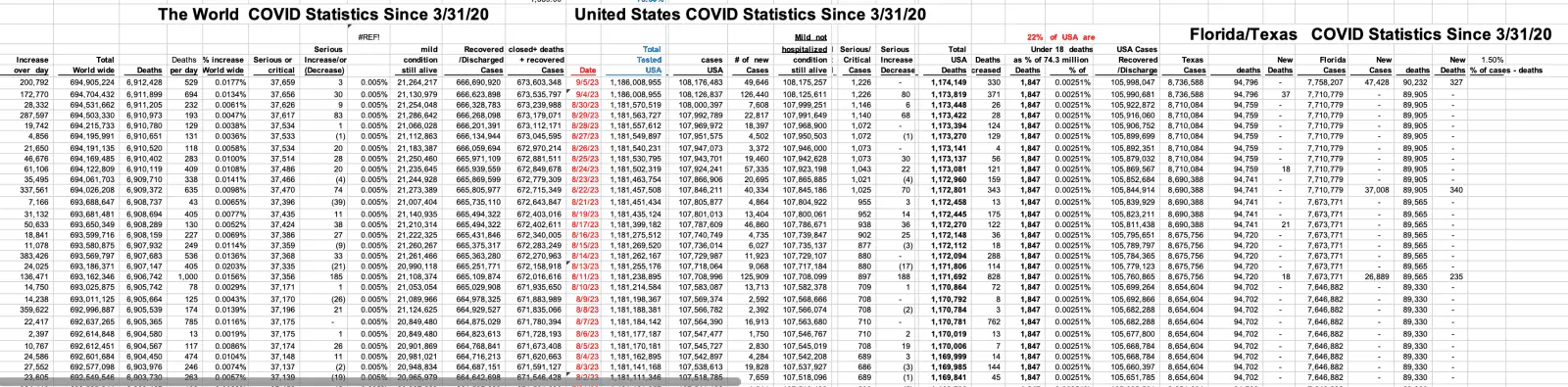 Since 3/31/20 I've been tracking world wide cases of Covid, deaths, and from this web site the number of kids under 18 deaths. Provisional COVID-19 Deaths: Focus on Ages 0-18 Years | Data | Centers for Disease Control and Prevention