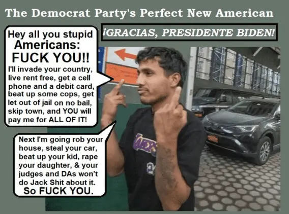The tatted illegal POS Biden and Democrats are welcoming to our country. Why isn't Joe in jail??
