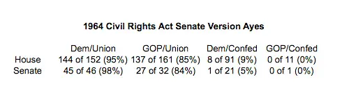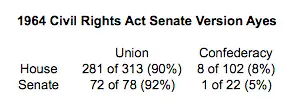 As we saw earlier more Republicans than Democrats voted for the Civil Rights Act, but that is not the whole story