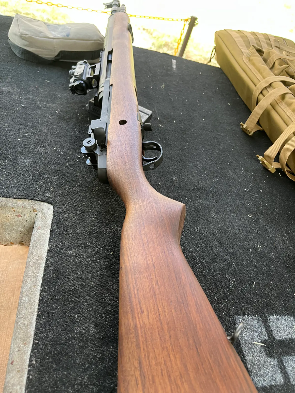 he had it laying around after changing one of his out, so he threw it on there as a kind of goof. Funny thing is that once I got it close, it wasn’t half bad. Eventually I am gonna go for an M-21 like setup.