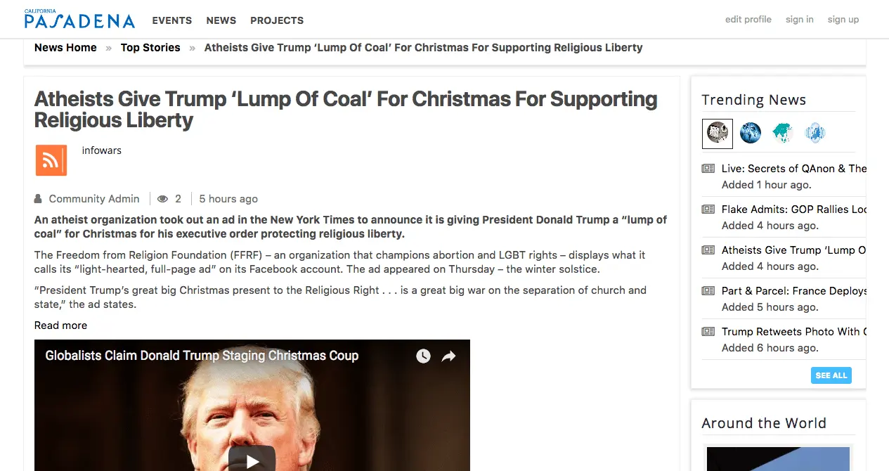 Atheists Give Trump ‘Lump Of Coal’ For Christmas For Supporting Religious Liberty