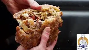 the apple fritters were the size of flat basket balls filled with apples,