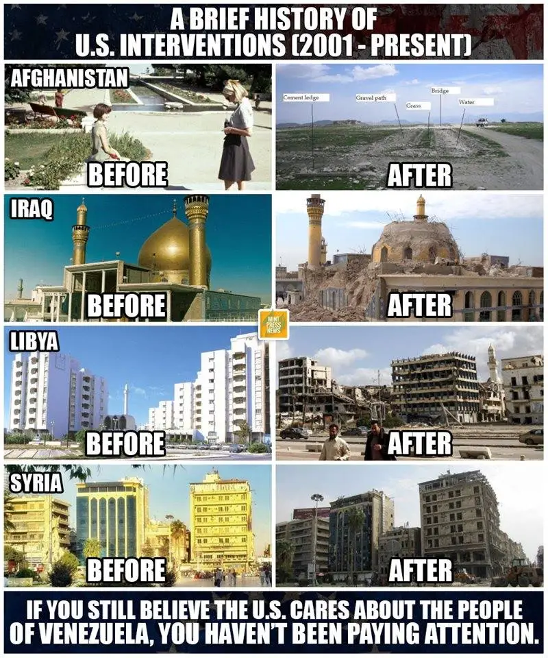 I always love when someone tells me ;your a moron dozens of nations over 50 have supported a regime change there . there is no trump troops there you idiot .w.we sent medical products and food and your great leader refused to allow them in the nation .