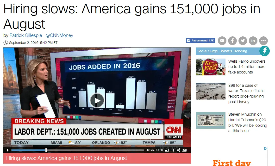 So is 138,000 fewer jobs created in June-August 2017 than June-August 2016 what Trump fans consider a bit better and winning?