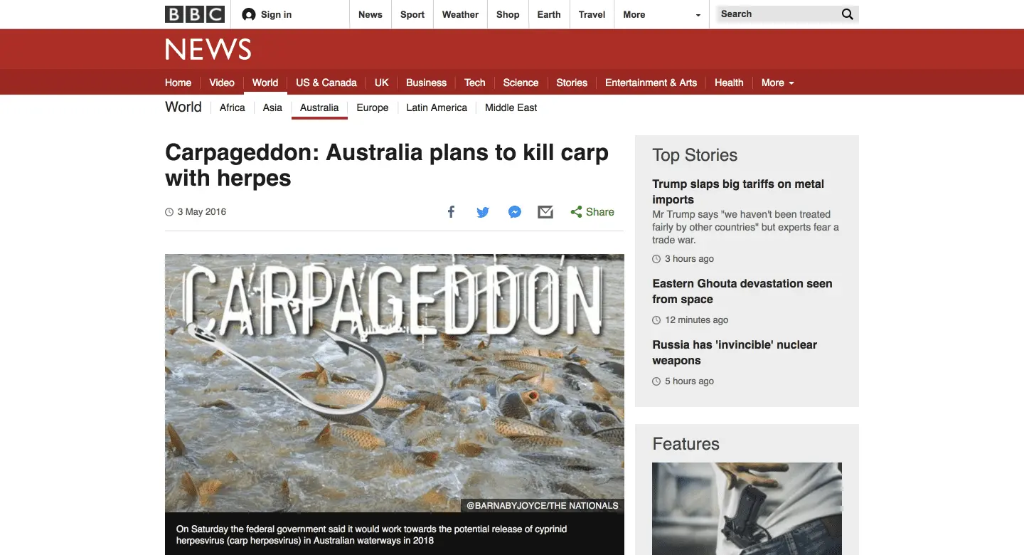 The Australian government have announced plans to release the herpes virus into its waterways by 2019, despite fierce opposition by the scientific community.