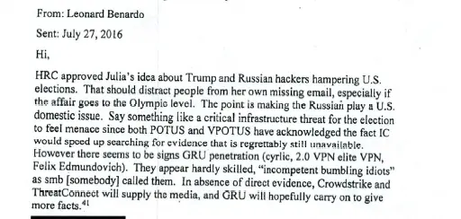 @Techno_Fog: From Durham's Classified Appendix- Authentic July 2016 emails discussing Hillary Clinton's plan to "demonize Putin and Trump." Predictions that "the FBI will put more oil into the fire." Hillary approve...…
