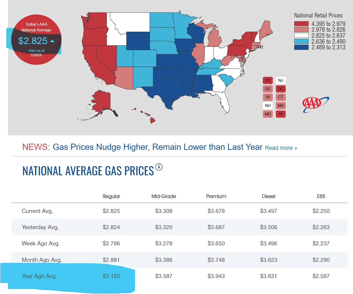 What is the OP referring to the average in that one particular Texas gas station or the national average last time I checked there are more than one gas station in the United States.