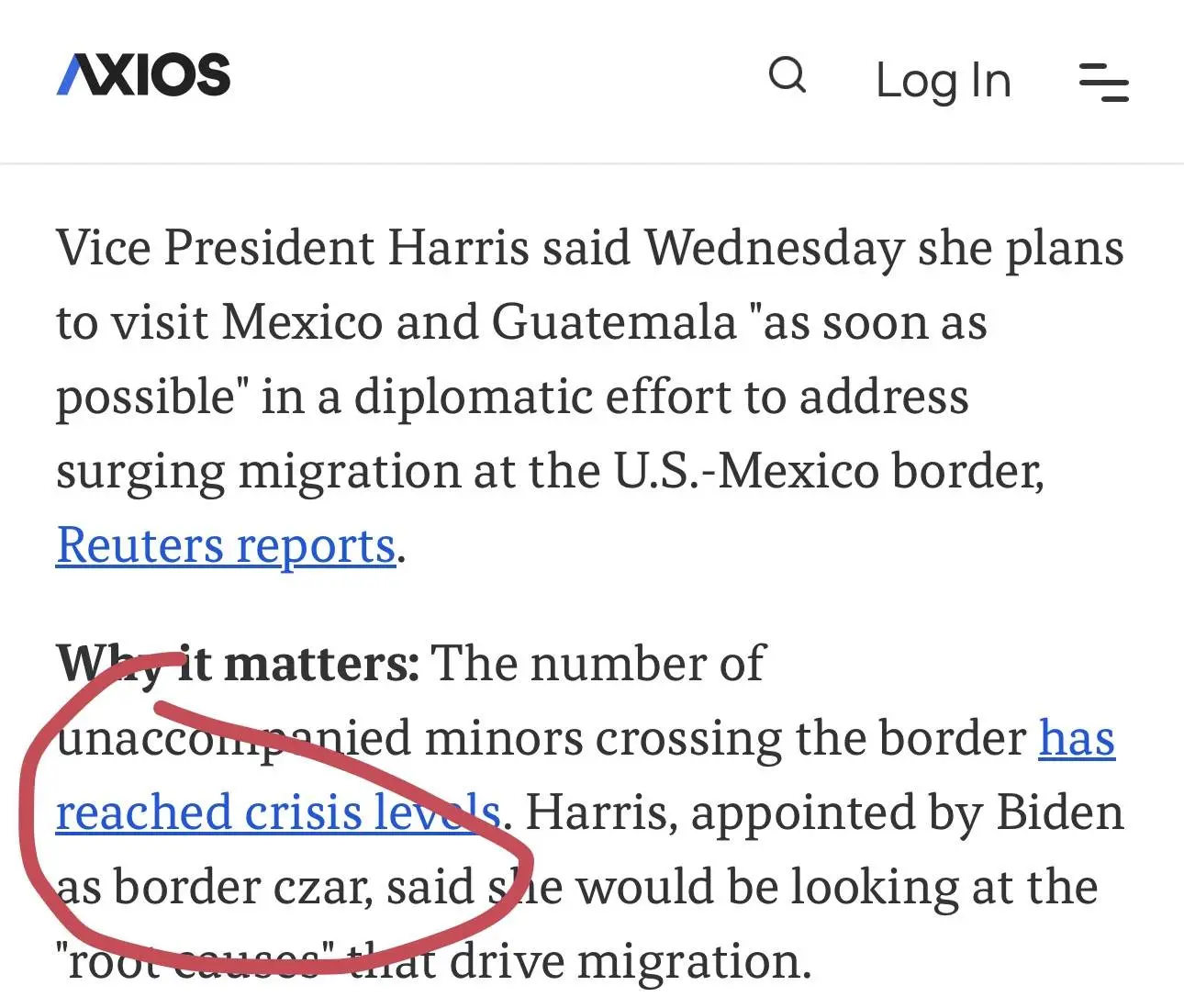 And not just Leftard Axios. Biden’s own press secretary referred to Harris and Harris herself as the border czar.