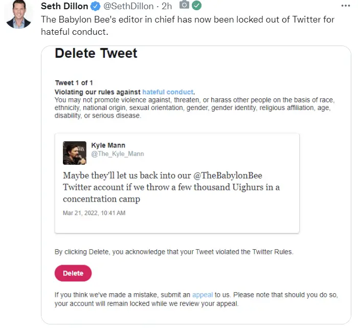 View attachment 619563 BREAKING: Babylon Bee editor-in-chief BANNED from Twitter