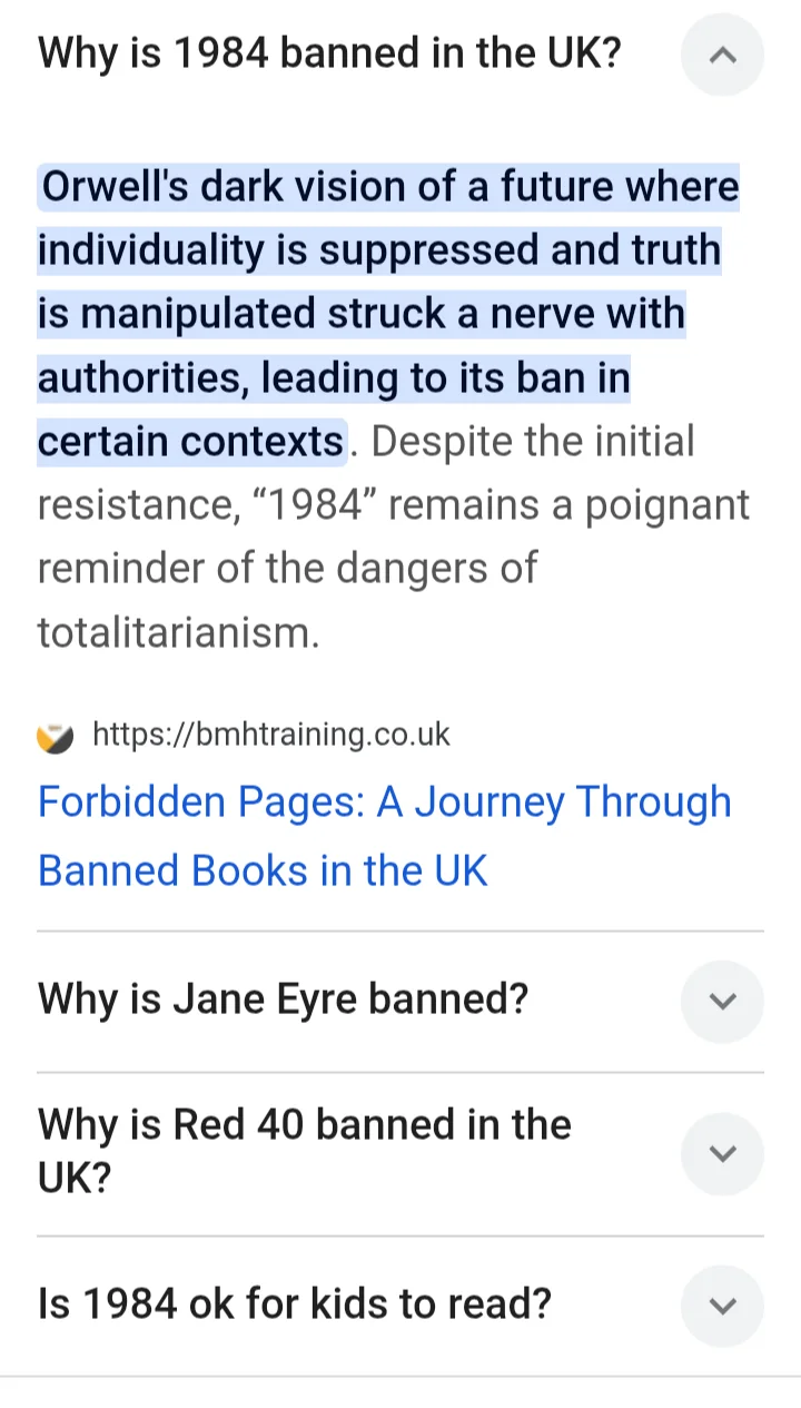 I read 1984 in school. And watched the film of the book. Where is it banned ?