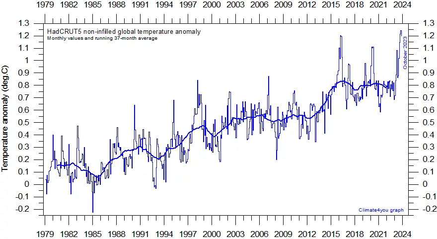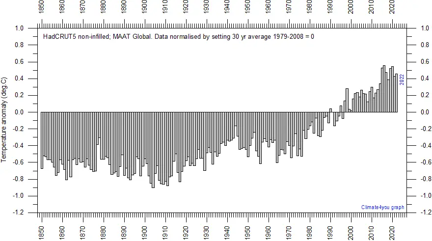 Here are two Hadcrut records from your site, www.climate4you.com. Your site states that HadCRUt are the most stable and least adjusted dataset.